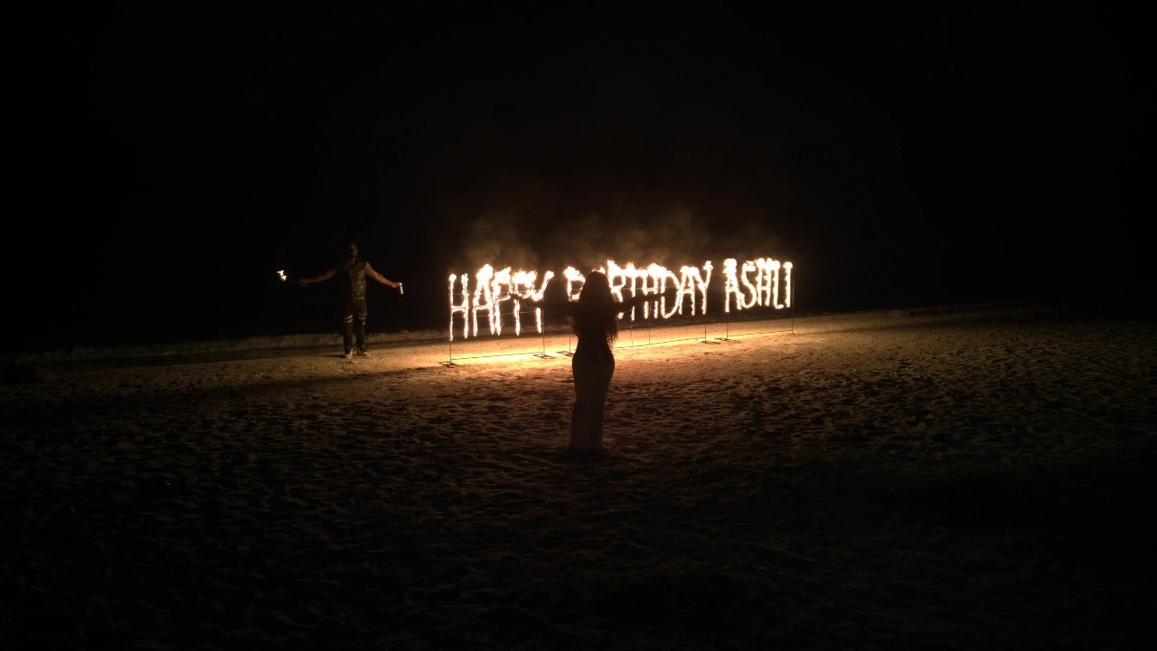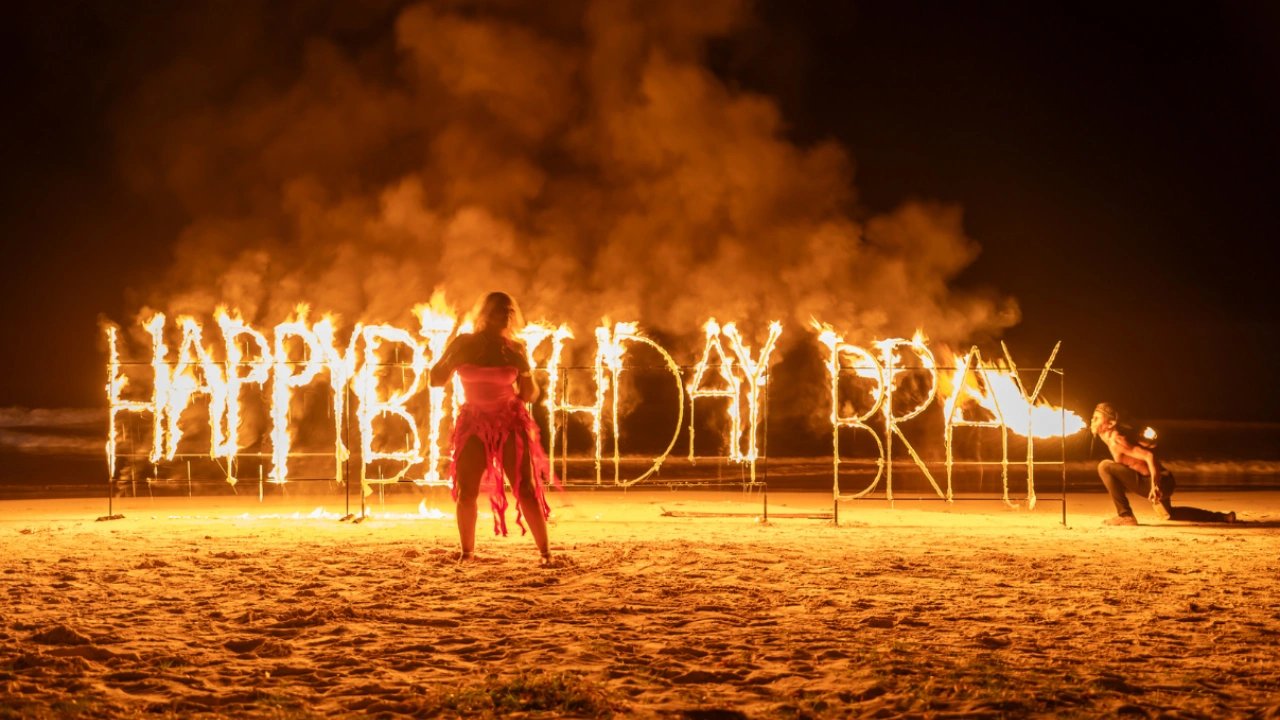 Whether you're celebrating your birthday or something special, this might be the experience you need. Enjoy a happy birthday celebration on the beach with your name lit up in FIRE, and watch as the flames glow on the ocean. Experience a full fire performance featuring a human fire dragon blowing fire like crazy from his mouth. It's a once-in-a-lifetime experience, something you have to see to believe. We are changing the way we celebrate life, so share this moment with the people you love and cherish.